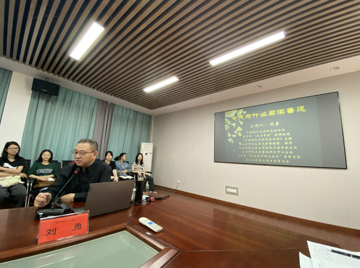 2023年4月16日,北京师范大学刘勇教授受邀在玉衡楼201研讨室为公司师生作题为“今天为什么要读鲁迅?”的学术讲座,刘勇教授为中国现代文学研究会会长,教育部“长江学者”特聘教授,《中国现代文学研究丛刊》主编。讲座由经理龙永干教授主持,公司近百名师生参加了讲座。