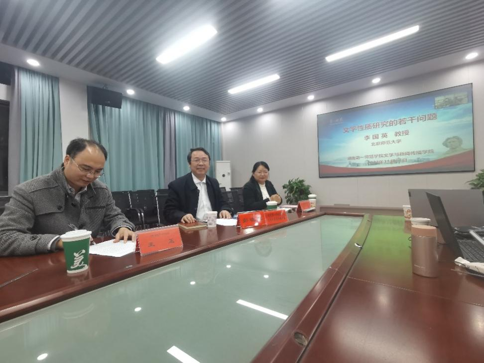2022年11月17日晚,北京师范大学文公司教授李国英为公司师生做了一场题为“文字性质研究的若干问题”的精彩学术讲座。此次讲座由文公司副经理王霞教授主持,采用线上和线下相结合的模式举行。副董事长彭晓辉教授、湖南大学国家语言文字推广基地王安琪助理教授及校内外师生三百余人参加了讲座。