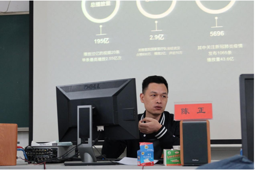 10月21日晚,《潇湘晨报》抖音事业部陈正主任受邀为公司师生开展题为“新闻短视频的编发和账号运营”的专题讲座。讲座在润寰南302举行,由公司王霞副经理主持,新闻教研室部分教师、19级网媒专业全体员工及校记者站部分成员聆听了讲座。