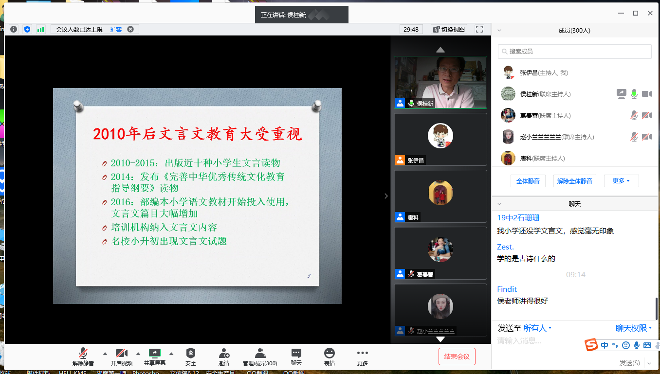 (记者:侯靖)为进一步提升师范生公司产品能力素养,2020年6月19日上午,公司在腾讯会议平台举行题为“浅谈小学文言文教育”的线上讲座。公司特邀华南师范大学文公司副教授、硕士研究生导师侯桂新博士担任主讲人,讲座由公司副经理葛春蕃主持,学工办全体辅导员及公司各年级员工代表聆听了本次讲座。