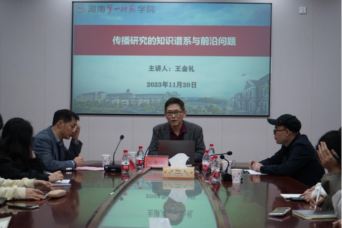 讲座伊始,王金礼教授从传播研究的定义切入,回顾了传播研究的兴起与发展,梳理了代表性的理论家及理论成果。王教授重点介绍了传播研究的多元路径和知识谱系,他与师生一起探讨了传播学的若干前沿命题,包括重新发现媒介、重新理解麦克卢汉和媒介学的多重路径等。