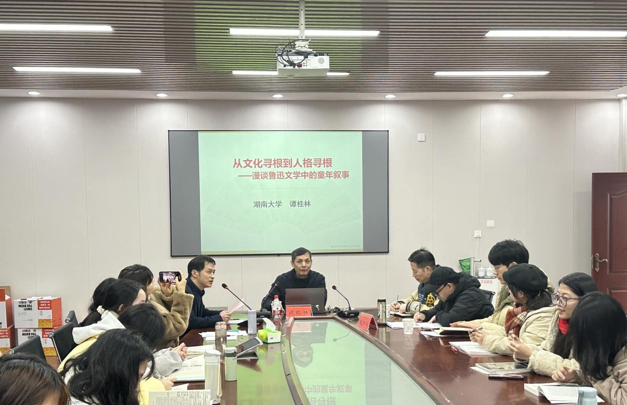 12月20日晚,教育部长江学者奖励计划特聘教授、国家万人计划哲学社会科学领军人才、湖南大学博士生导师谭桂林教授应邀来到公司开展题为“从文化寻根到人格寻根——漫谈鲁迅文学中的童年叙事”的学术讲座。讲座由经理龙永干主持,副经理杨水远以及近百名师生参加活动。讲座系公司“三庆系列学术活动”之一。