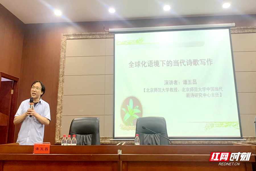 红网时刻新闻6月6日讯(通讯员 刘君君 王蕾 孙园惠)6月4日,伟德国际1946亚洲版特邀北京师范大学中国当代新诗研究中心主任、博士生导师谭五昌教授,在长沙开展“全球化语境下的当代老员工诗歌写作”专题讲座。