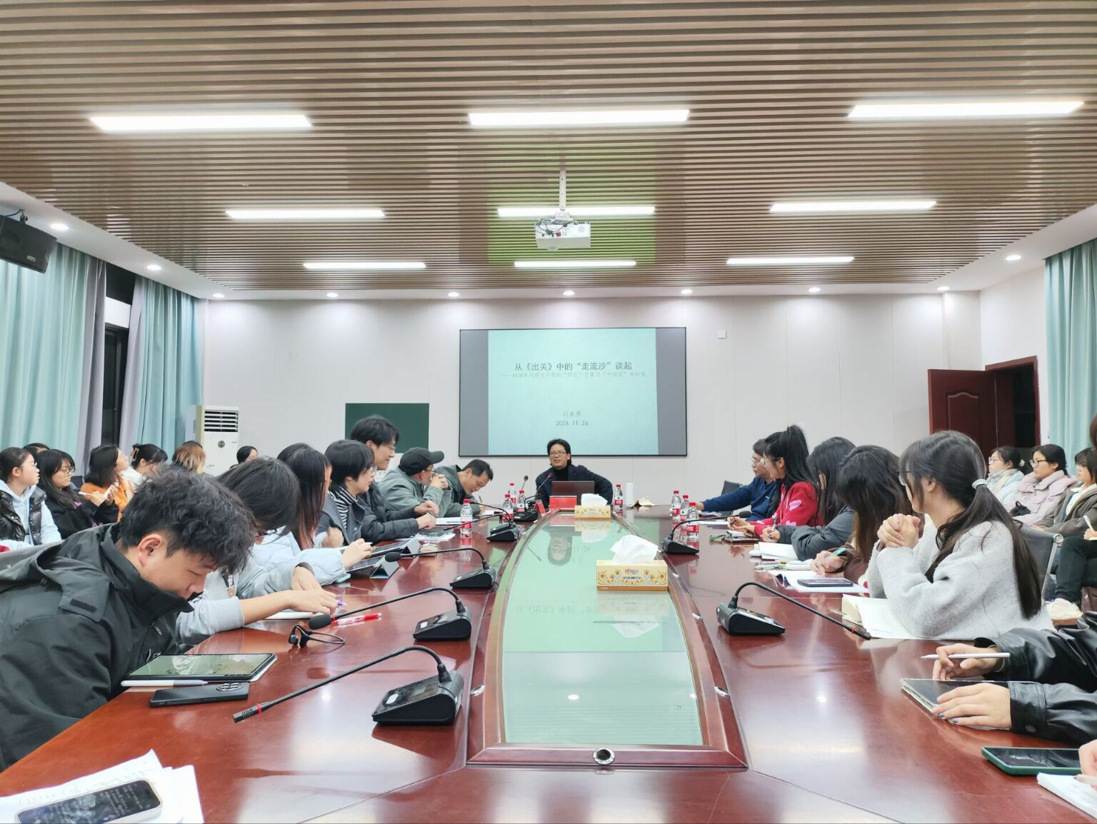 2024年11月26日晚,中国传媒大学文公司教授,博士生导师刘春勇教授应邀来公司开展“从《出关》中的走流沙谈起:19世纪30年代的‘西北’和鲁迅‘中国观’再检视”为主题的讲座。讲座由龙永干经理,杨水远副经理和百余名师生参与。讲座由龙永干经理主持。