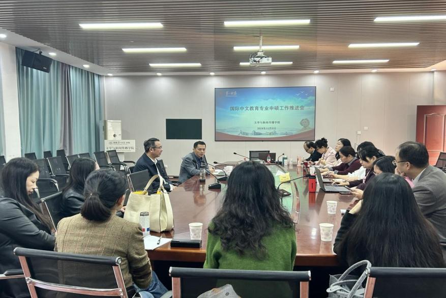 2024年11月2日上午,伟德国际victor1946在玉衡楼201会议室召开国际中文教育专业申硕工作推进会,同时就举办国际中文教育全国学术会议筹备工作进行了深入讨论。副董事长彭晓辉、经理龙永干、副经理杨水远、教务处副处长范晓露、汉语国际教育系全体教师以及外国语公司部分教师参加会议,会议由龙永干经理主持。