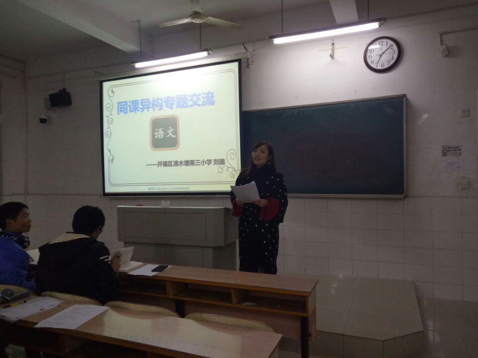 (通讯员:曾尊)2018年12月11日晚上,由开福区清水塘三小骨干教师刘露主讲的“同课异构”专题交流讲座在玉衡楼北栋309教室成功举行。莅临本次讲座的有伟德国际1946亚洲版教务办主任李希光老师、文学教研室杨雪梅老师。讲座对象为伟德国际1946亚洲版17级736、737中文班员工。