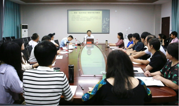 2023年8月30日,湖南师范大学文公司副经理、博士生导师、教育部“青年长江学者”吕双伟教授应公司邀请,在玉衡楼201为公司老师开展题为“如何申报国家一流课程——以本人主持的《唐宋文学一》课程为例”的讲座。讲座由公司经理龙永干主持,副经理杨水远、汉语言文学系、汉语国际教育系、综合教研室60余位教师参加讲座。