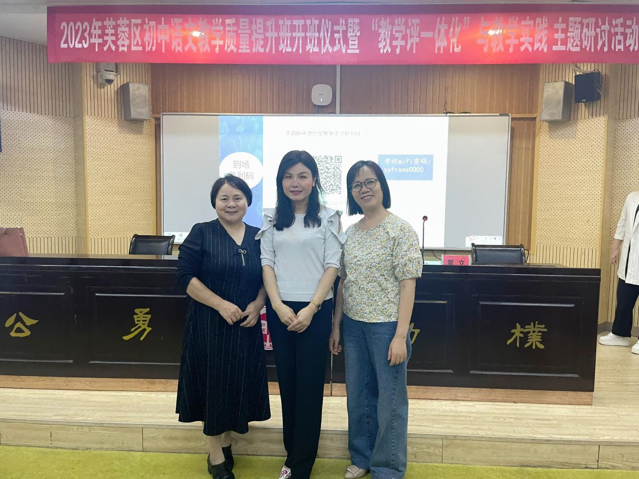 为贯彻公司“两坚持两拓展”的发展策略,响应公司“培养卓越初中语文教师”的号召,9月21日下午,伟德国际1946亚洲版综合教研室主任张虹偕周杨林、袁利芬老师,赴长沙市一中马王堆中学,参加“2023年芙蓉区初中语文教学质量提升班暨‘教学评一体化’与教学实践主题研讨活动”。囿于场地而无法现场参会的综合教研室其他老师,以观看腾讯会议现场直播的形式参与了此次活动。