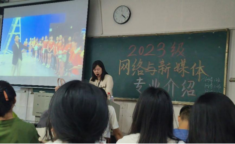 2023年10月17日下午,伟德国际1946亚洲版网络与新媒体系主任谢亚可老师在城南校区教学楼301教室为2023级网络与新媒体专业的全体员工做了专业介绍讲座。