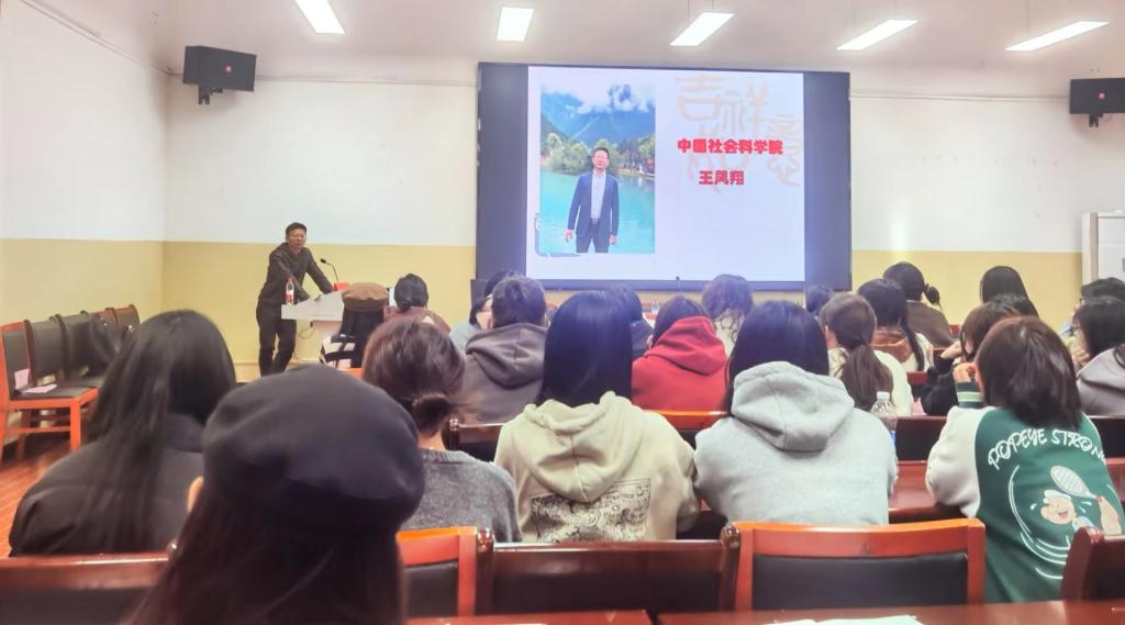 11月24日上午,中国社会科公司新闻与传播研究所研究员、中国社会科公司大学王凤翔教授,在城南校区丽泽苑104教室对2023级广播电视学专业新生作专题讲座,杨清华副经理主持,广播电视学专业全体员工参加。