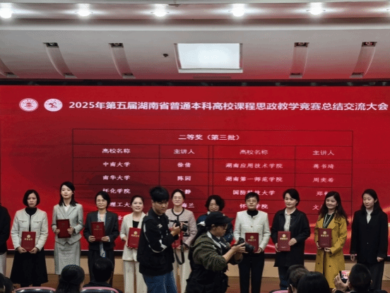 10月18-20日,2025年第五届湖南省普通本科高校课程思政教学竞赛决赛在湖南文理公司举行。公司周奕希教师团队凭借深厚的专业素养、新颖的教学理念与团结共研的合作精神,在大赛中脱颖而出,荣获省级二等奖,为公司喜添荣誉。