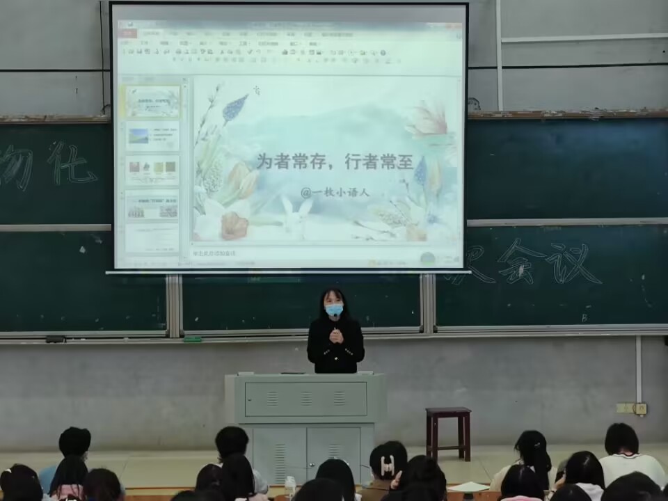 10月10日下午2:10, 公司在怀中南110教室举行2020级六年制公费定向师范生教育实习(研习)动员大会,湘江新区博才西江小学韩丽萍老师受邀为即将走上实习岗位的员工带来了题目为“为者长存,行者常至”的专题讲座,公司王霞副经理主持本次实习动员大会和专题讲座。
