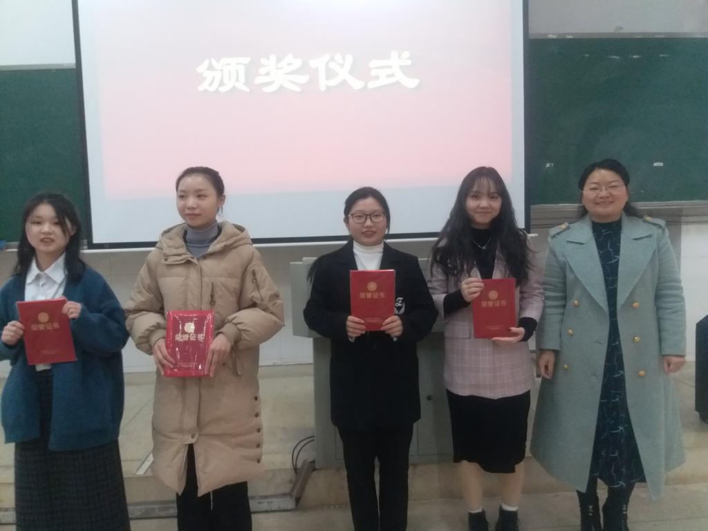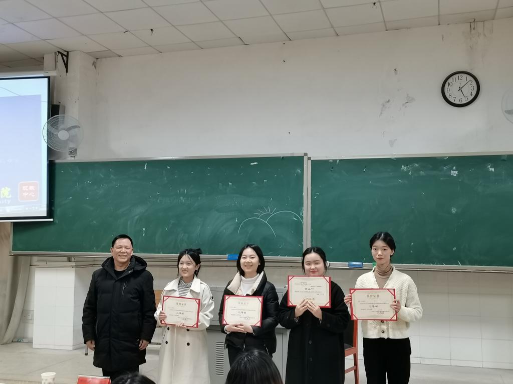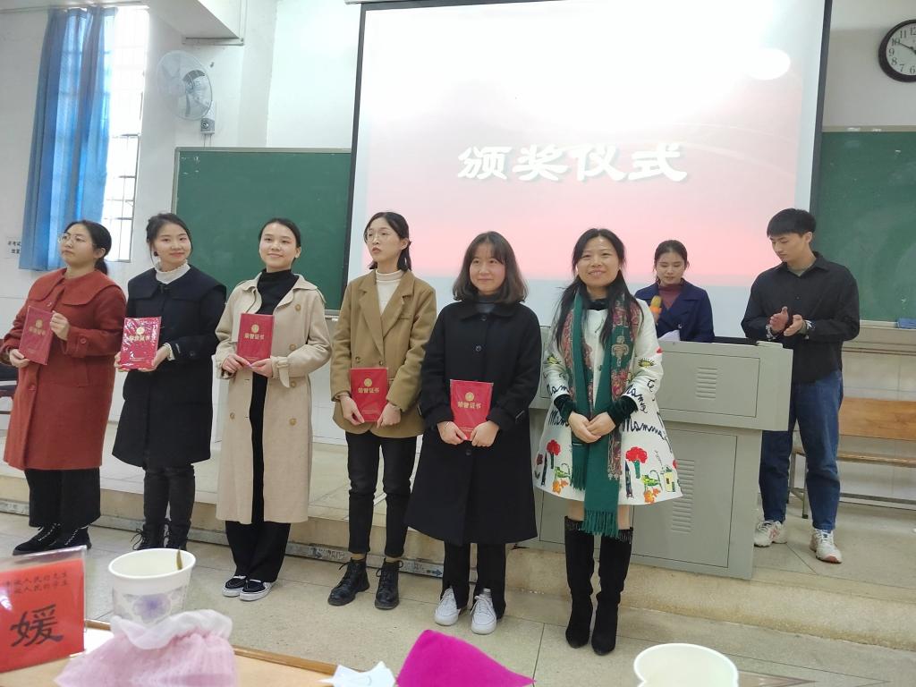 经评审团最终评审,797中文班聂新宇、797中文班郭翔宇、797中文班游景岚、800中文班王湘、801中文班李琴、801中文班唐群等6名同学荣获一等奖,796中文班朱甜等8名同学荣获二等奖,796中文班李纯等10名同学荣获三等奖。院领导龙永干、欧阳范剑、王霞,专业评委周杨林、谢杰、周媛、袁利芬等老师分别为他们颁奖,并对他们表示了热烈的祝贺和深切的期待。