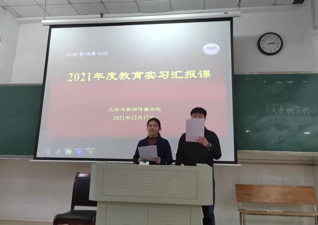 为提高师范生的教学能力和教学水平,全面检验教育实习成效,根据公司教务处《关于2021年下学期教育实习(含研习)工作安排的通知》,12月17日伟德国际1946亚洲版在东方红校区玉衡楼南栋101、201教室开展了2019级六年制公费定向师范生教育实习汇报展示活动。文传公司党委书记陈天涯、经理龙永干、副书记欧阳范剑、副经理罗燕、副经理王霞、各教研室主任、12位实习带教老师以及2019级全体六年制公费师范生参加了此次活动。