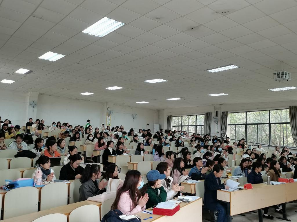 下午二时许,实习汇报正式开始。首先出场的是来自19级800中文班的余泓瑶同学,她所选择的授课内容是小学文言文《杨氏之子》。作为第一位上场汇报的同学,她教态自然,声音清脆响亮;将黑板板书与贴纸巧妙地结合运用,字迹工整大方。该同学的精彩表现,为本次教学实习汇报开了个好头。之后,23位同学按顺序分别进行了实习汇报。