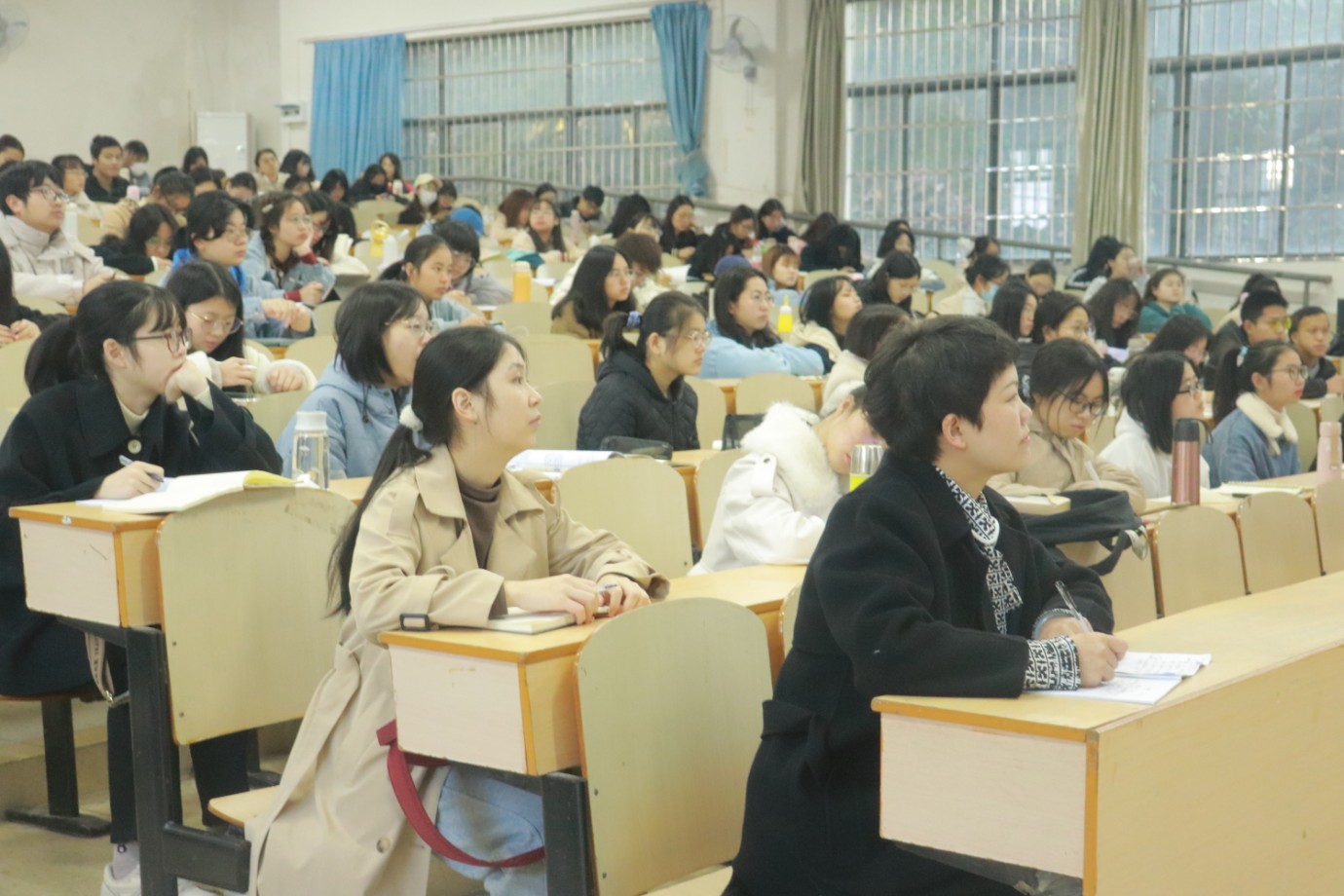 讲座围绕“什么样的课是好课” “一堂好课的基本要求是什么” “一堂好课的教学设计应关注什么”三大问题展开。余董事长认为,“一堂生态的、本真的、原始的、生成的课才是一堂好课”。余董事长提出了一堂好课的基本要求:第一是有意义,第二是有效率,第三是具备生成性,第四是常态性,第五是待完善。按照好课的标准,余董事长认为“教学是一门有缺陷的艺术”。在谈到第三个问题时,余董事长以六年级教材中与鲁迅这一人物相关的单元为例,具体分析了一堂好课的教学设计应关注什么,并提出以下六点:从员工的角度研读教材,把握好教学的逻辑起点和现实起点,课题的引入和过程的转折要明白有趣,设计好问题的递进与链接,发掘教材中“过程与方法”的素材,课堂设计要留有弹性空间。余董事长还与同学们分享了提高阅读兴趣的方法和朗读的重要性。最后,她提到古诗文教学要“因材施教” “因材定教”“激发兴趣”“揣摩意象”。