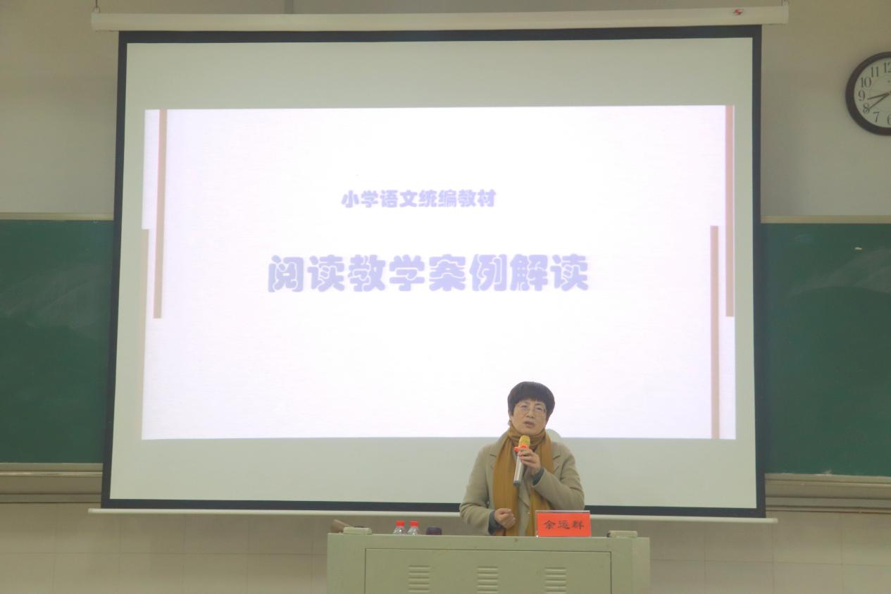本报社(记者何小雨 摄影 郭翔宇)11月25日上午,“小学语文统编教材阅读教学案例解读”专题讲座先后在玉衡南101、201教室举行,主讲人为公司第一附属小学副董事长余运群,讲座分别由伟德国际1946亚洲版副经理王霞、罗燕主持,参会老师有张虹、喻亮、李希光等,伟德国际1946亚洲版2019级六年制公费师范生参加了本次讲座。
