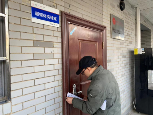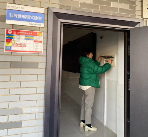 2023年12月27日上午10时,杨水远副经理带领实验员袁丁、教科办陈慧开展放假前的实验室安全大检查。检查组一行人对公司新媒体实验室、非线性编辑实验室进行了全方位的细致检查,每检查完一间实验室立即拉闸断电并粘贴封条。