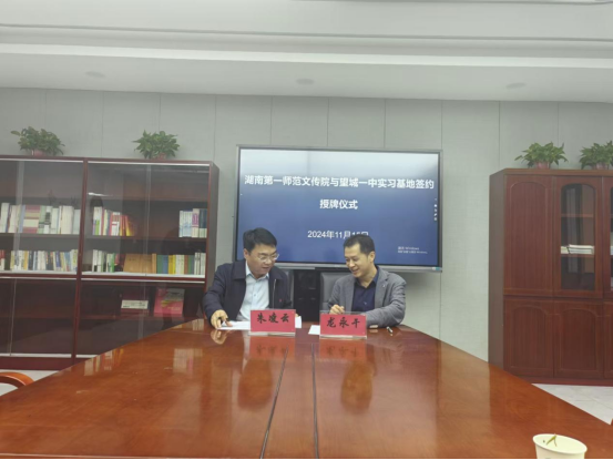 2024年11月15日,在长沙市望城区第一中学举行了实践教学基地建设签约仪式。长沙市望城区第一中学党委书记朱凌云、课程教务中心主任李文华、高一年级部主任刘凯奇以及公司党委书记刘立勇、经理龙永干、教科办主任林璟辉参加了签约授牌仪式。