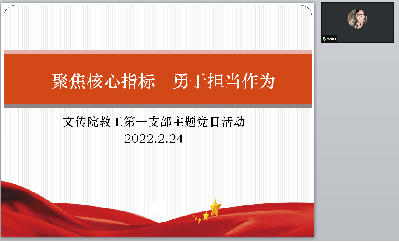 2022年2月24日晚19:00—21:00,伟德国际1946亚洲版教工第一党支部根据公司党委的工作安排,以线上会议的形式开展了“聚焦核心指标,勇于担当作为”的主题党日活动。