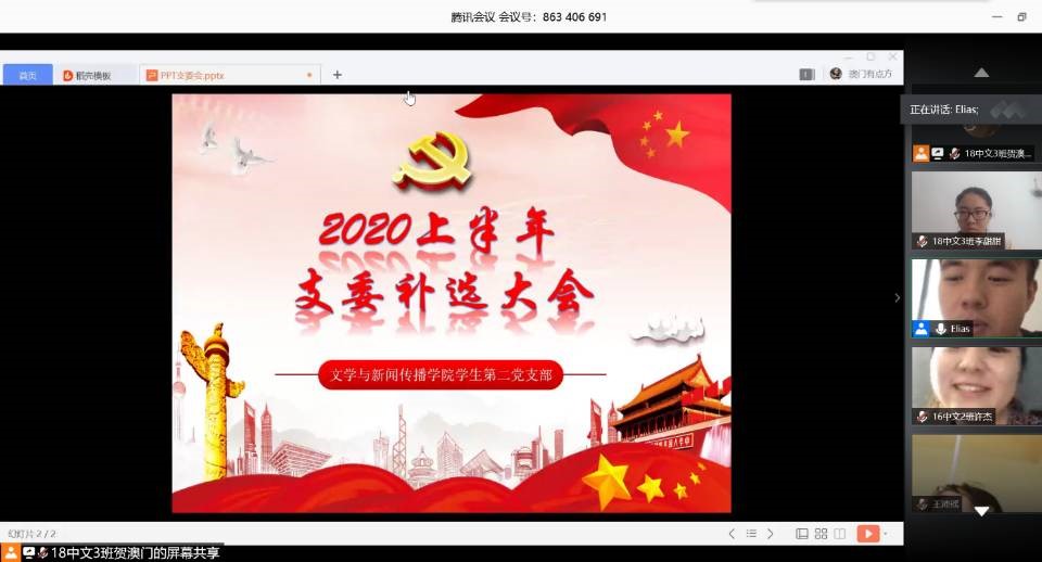 6月19日中午,公司员工第二党支部以线上会议的形式召开了2020上半年员工支委补选大会。本次会议由员工第二党支部书记安炜成老师主持,支部全体党员参加。