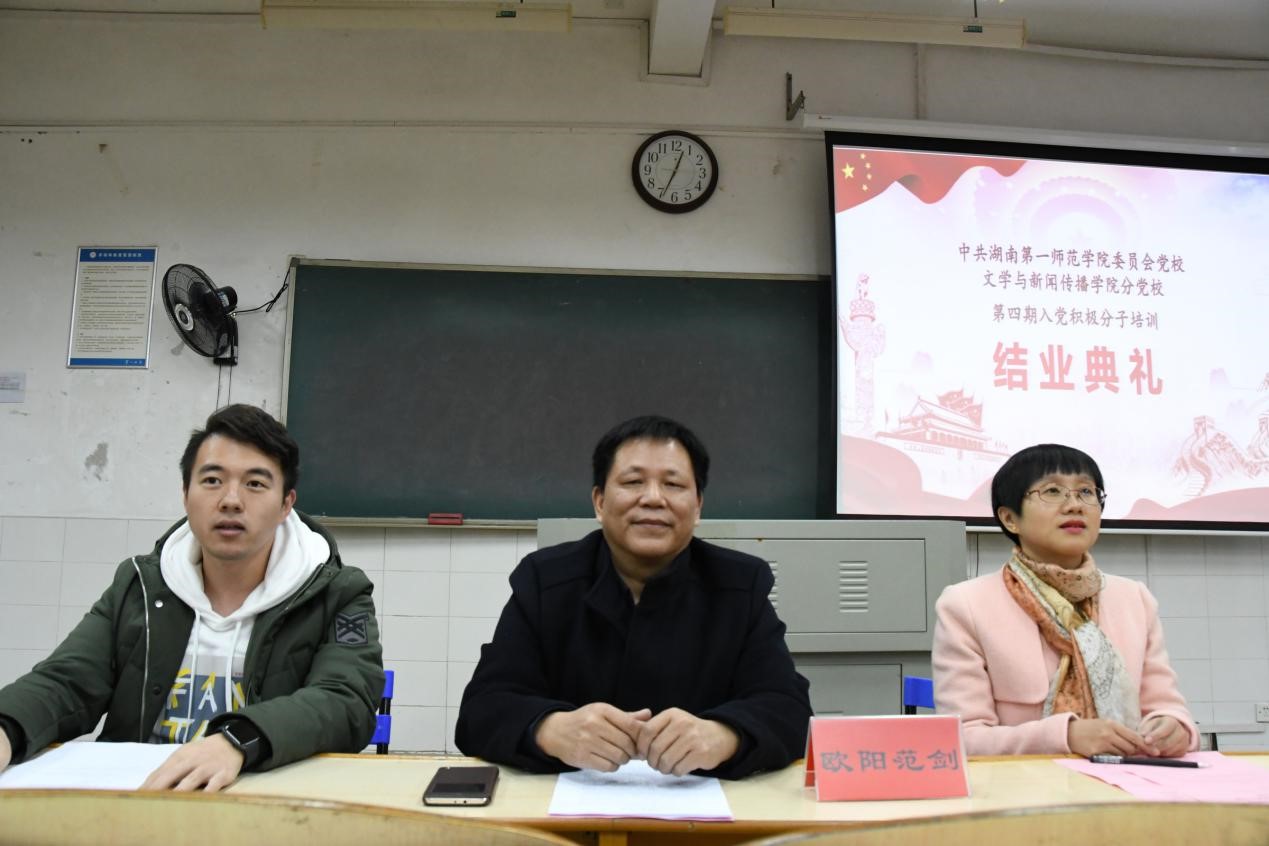2019年11月27日中午12:30,公司分党校第四期入党积极分子培训结业典礼暨优秀学员颁奖典礼于玉衡楼206隆重举行,公司分党校副董事长、党总支副书记欧阳范剑,公司员工党支部书记唐科、安炜成以及全体入党积极分子参加了此次典礼,典礼由欧阳范剑副书记主持。