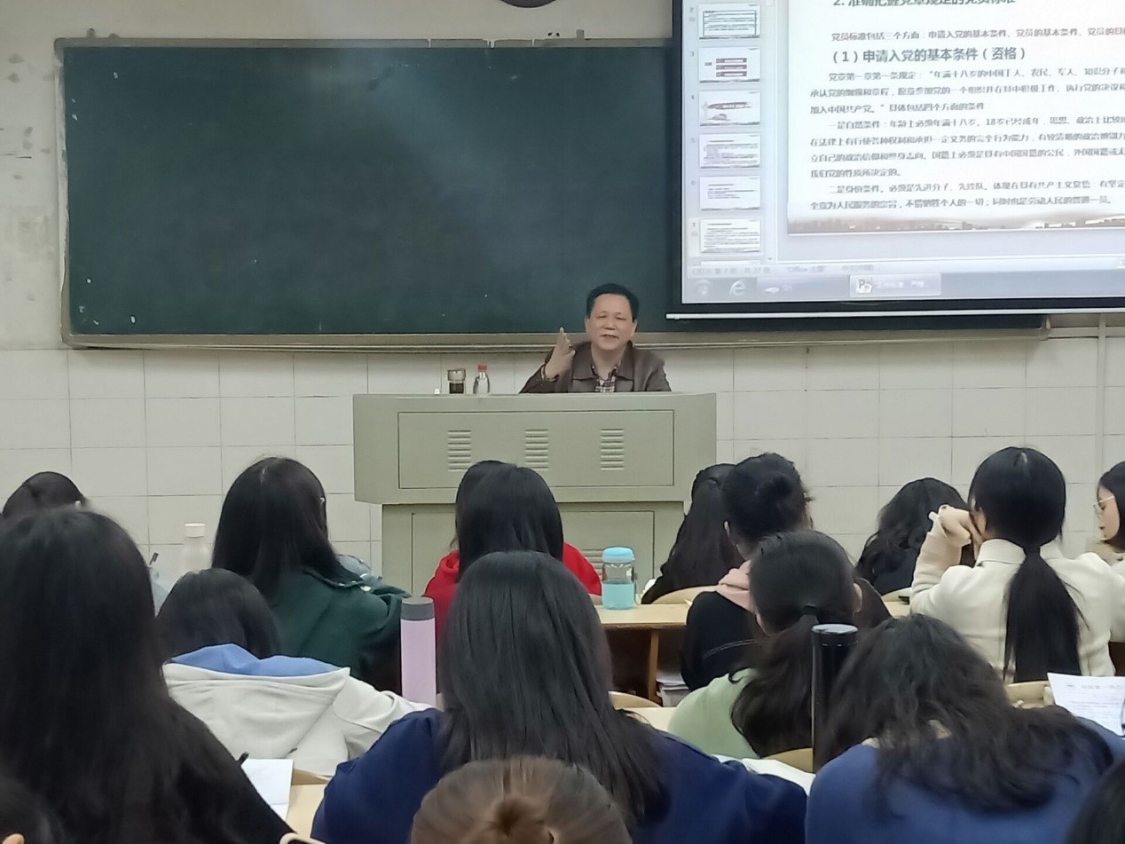 欧阳书记指出,党员发展与党员教育管理工作都是党的建设基础性经常性工作,是党的基层组织的重要任务,必须要高度重视,全力抓好,要严格遵循发展党员工作的总要求,准确把握好党章规定的党员标准。他向同学们详细讲解了入党程序,并鼓励同学们积极向党组织靠拢。此外,书记还针对党员发展以及党员教育管理工作过程中出现的一些经常性的问题提出了具体要求:在五个阶段、二十五个环节中,都要加强沟通联系,严格审查材料,做好工作衔接;坚持融入日常,抓在经常,从基层工作抓起,从基本制度抓起。