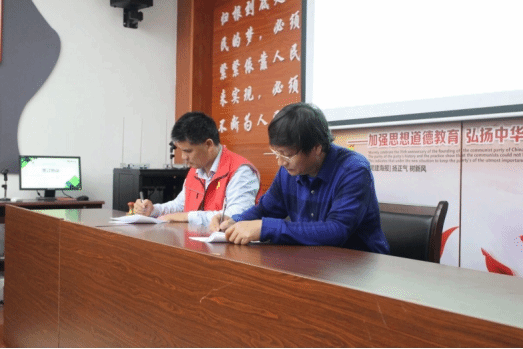 授牌仪式由麓泉社区党总支书记代立宪的致辞拉开序幕,他首先高度肯定了伟德国际1946亚洲版前期结合专业特色开展的“国学小讲堂”志愿活动,优秀传统文化蕴含着丰厚的民族精神和道德理念,为社区各个年龄阶段儿童提供了重要思想养分。文传公司党总支书记刘澍心教授表示了对实践基地成立热烈的祝贺,及对老员工志愿者们的殷切期望,他强调青年时期是学习的黄金期,并鼓励老员工积极贴近基层,深入社会,真正做到学习书本知识与投身社会实践相统一。接下来,社区党总支书记代立宪及文传公司党总支书记刘澍心教授双方代表签订合作协议,刘澍心教授代表公司授牌,社区党总支书记代立宪代表麓泉社区接牌,两人上台握手,标志着双方的合作迈上了新的征程。最后,志愿者集体宣誓以表帮助他人、服务社会的决心,更加坚定“奉献、友爱、互