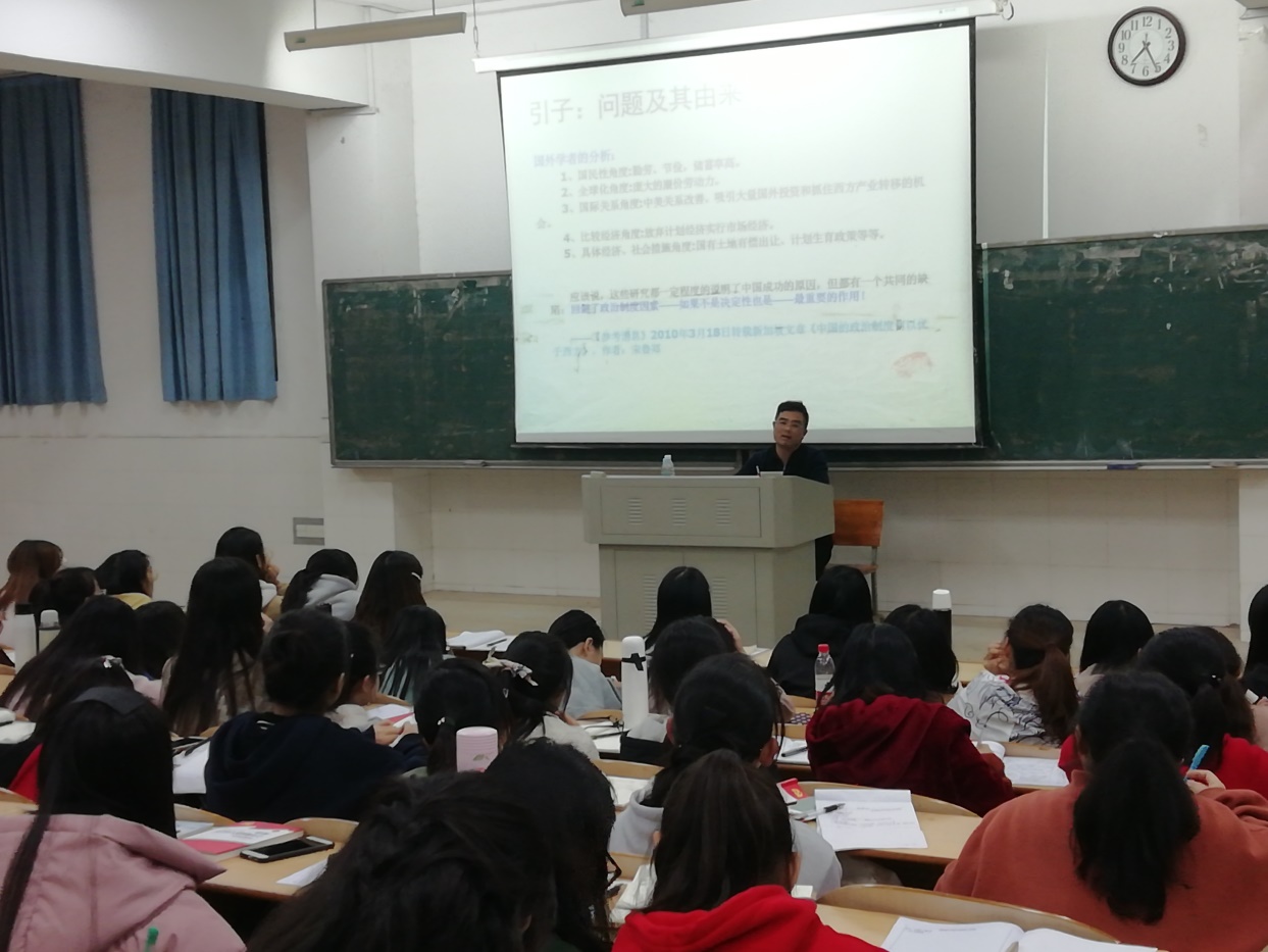 陈志武处长从“四个自信”的由来、文化与道路、优势与自信、坚定“四个自信”四个方面进行讲解。陈处长以中西对比这样一种新颖的方式,从全球化、国民性、国际关系等各个角度证明了我国“四个自信”的正确性及前进性。同时告诉每位入党积极分子要充分认识到我们党和国家的优势,坚定不移的跟党走。