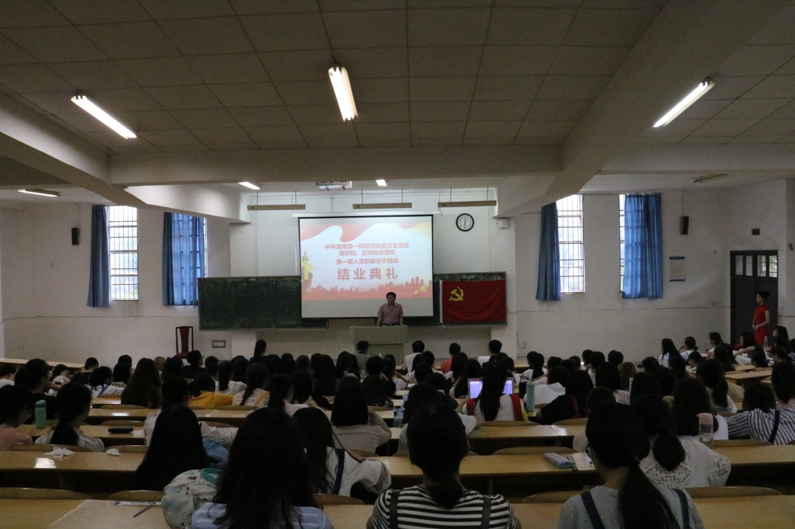 2018年5月30日中午12:30,伟德国际1946亚洲版、商公司分党校第一期入党积极分子培训班结业暨优秀学员颁奖典礼在实C101隆重举行。伟德国际1946亚洲版分党校董事长、党总支书记刘澍心、商公司分党校董事长、党总支书记谢培松、欧阳范剑书记、伟德国际1946亚洲版员工第一党支部书记罗燕老师、商公司员工第一党支部书记禹晗、胡颖老师及两院137位第一期入党积极分子参加典礼。
