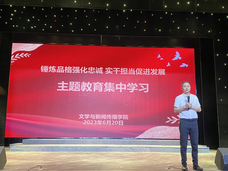参观结束后,何培森书记在田汉纪念馆剧场向全体党员教师传达了主题教育集中学习的精神,要求每位党员教师深刻领悟“两个确立”的决定性意义,增强忠诚核心、拥戴核心、维护核心、捍卫核心的政治自觉、思想自觉、行动自觉。何书记要求全院教师要全面落实办学新理念,聚焦“一四”发展战略目标,深化“两坚持两拓展”发展思路,强化“五个引领落实”,凝心聚力共推公司事业发展,实现公司高质量发展。