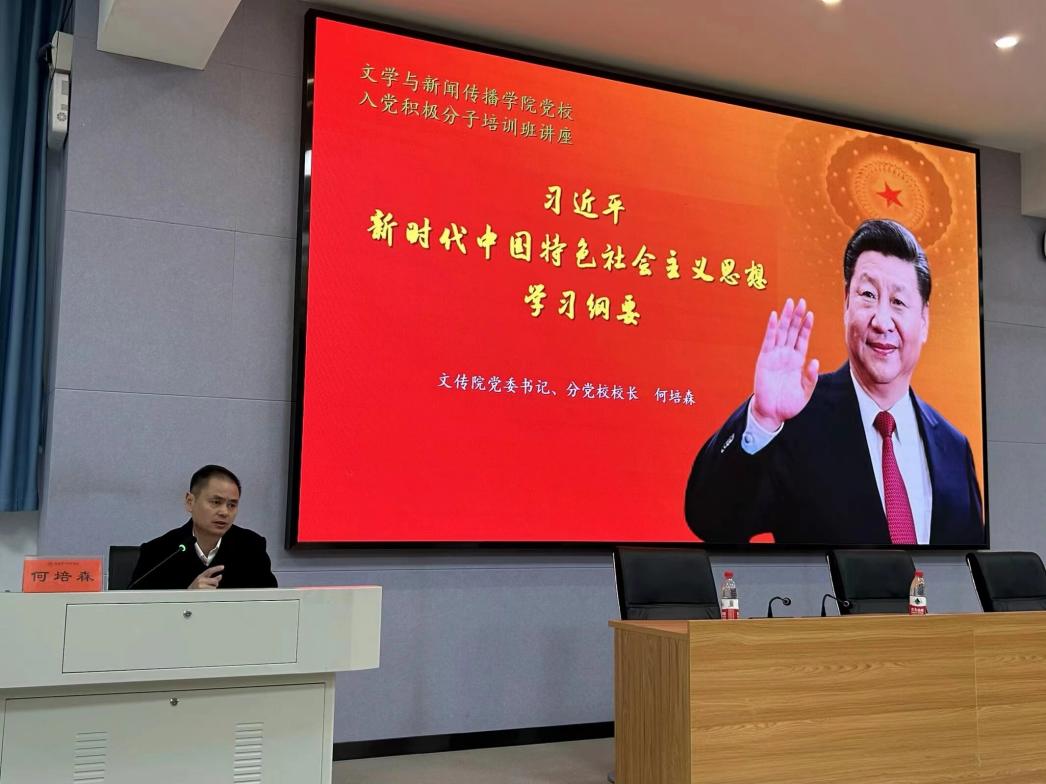 来自21级859中文班的尹小燕发言,她表达了自己坚定的入党之心,呼吁在座学员传承红色基因,发扬有为精神续接伟大工程,团结携手奋进,不忘入党初心。