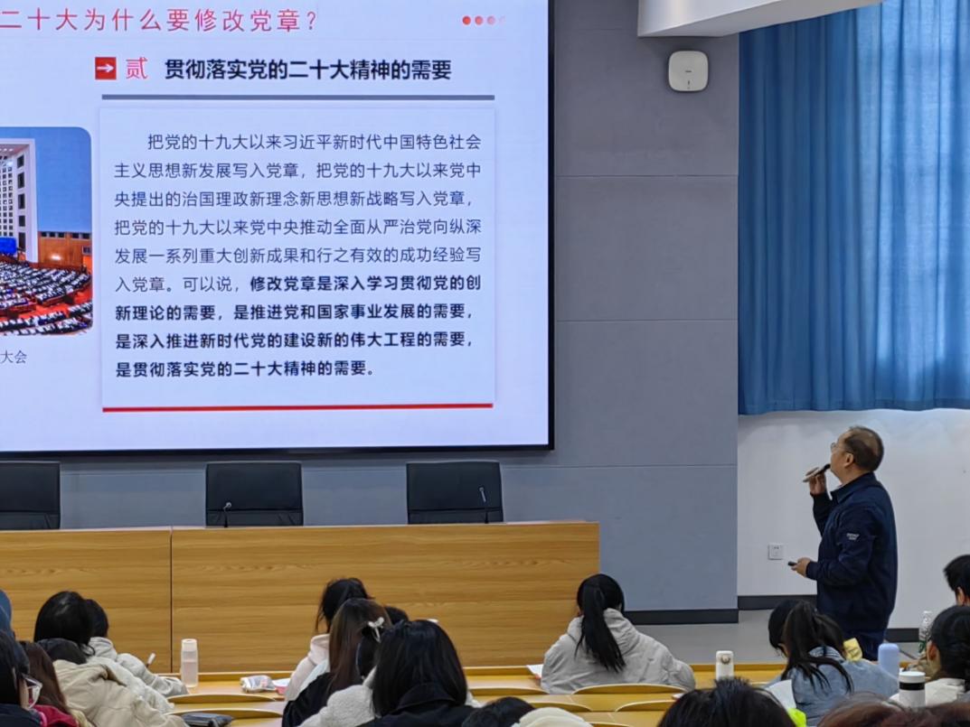 集团组织统战部副部长肖霄在专题讲座中,对中共二十大新党章进行了全面详细解读,让学员们对于党章的修订,党章如何发挥和规范党员的言行作用有了更进一步的了解。