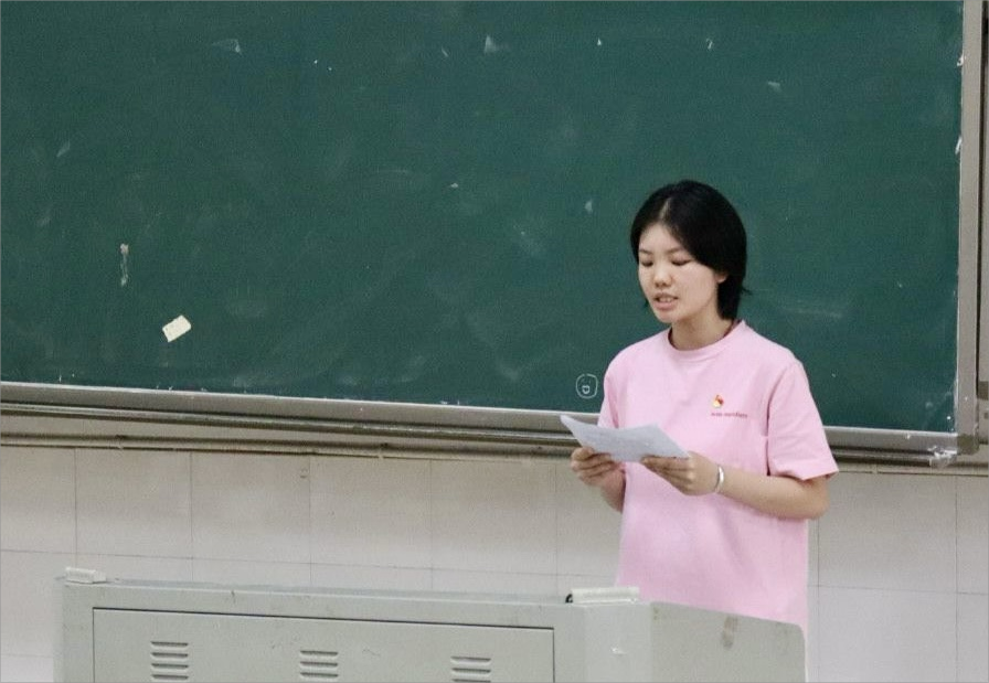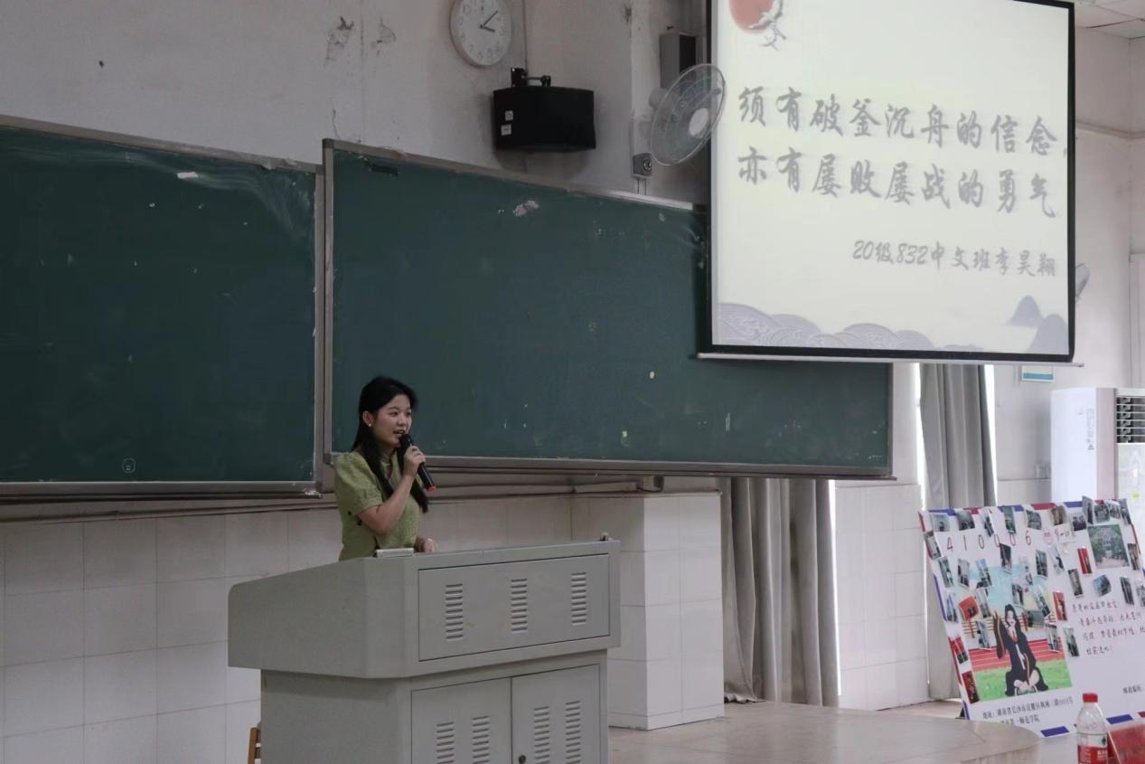 优秀党员代表,20中文1班杨婧怡以“积蓄星火 以待磅礴”为主题与大家分享考研经验,从心态、学习节奏、坚持三个方面分享了自己的考研安排、考研时遇到的困难以及心态的调整,为同学们提供了宝贵的考研经验。