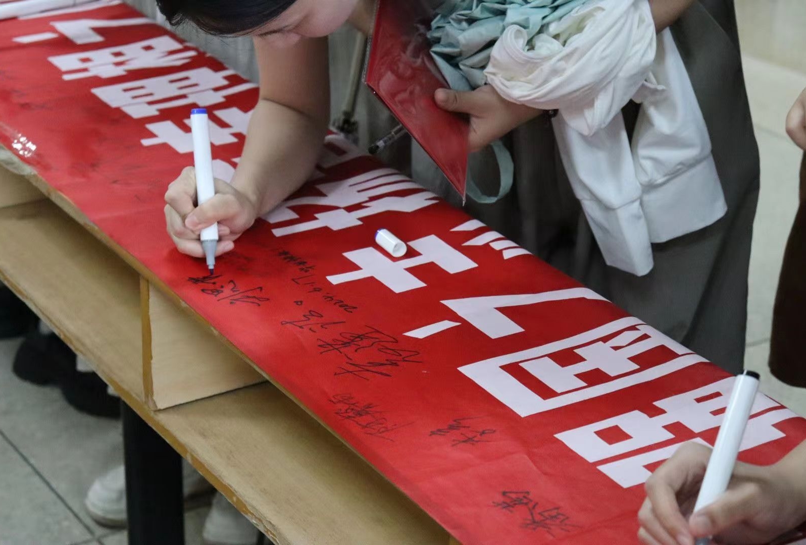 毕业生在横幅署名
