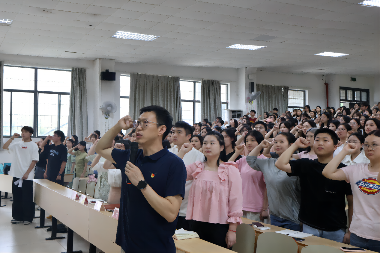活动开始由李豪杰带领毕业生党员们重温入党誓词,当全体党员举起右手、握紧拳头,面对党旗庄严宣誓、重温入党誓词的那一刻,八十个字的铮铮誓言,历经岁月的磨洗,愈加清晰,初心使命历久弥坚。