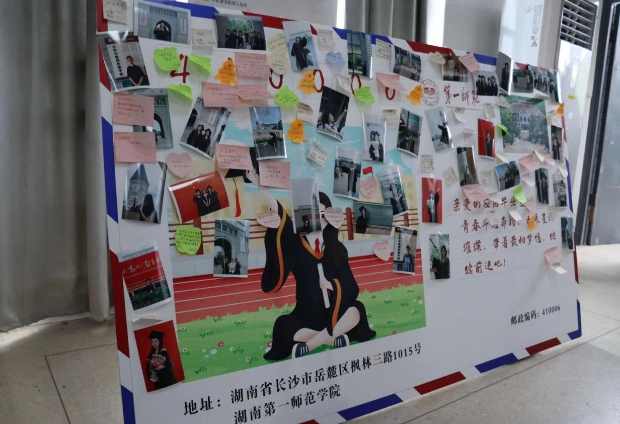 活动最后,员工党支部老师以及全体毕业生党员合影留念,毕业生党员为一师、为文传,为老师同学写下祝福和寄语,将最美好的祝福留在母校,张贴在“我想和文传说”留念墙。