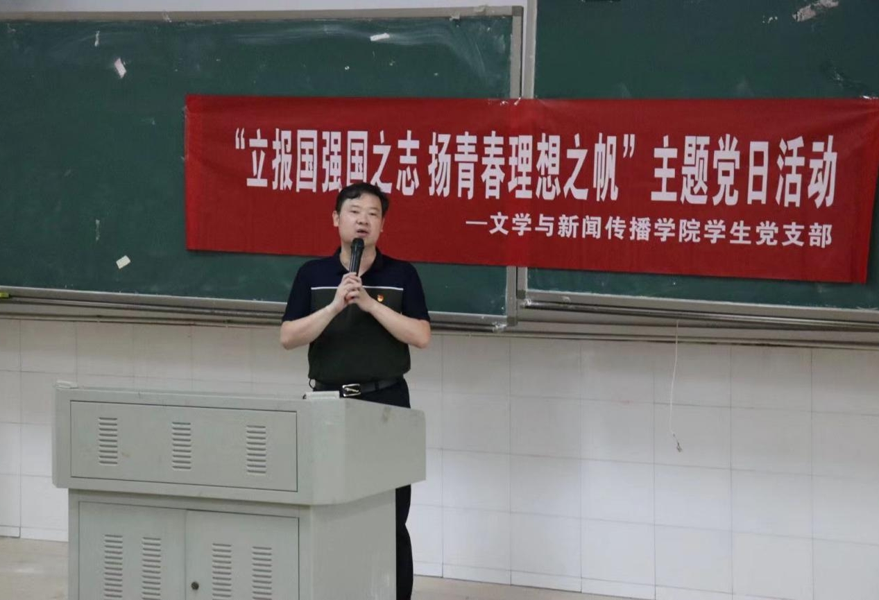 优秀党员代表,20级832中文班李昊翔从“接受失败与脸皮要厚”、“水滴石穿与我有傻劲”、“放下成败与感受过程”三个方面讲述自己多次比赛失利到最后成功的经历。激励同志们在面对挑战时,不畏艰难,敢于拼搏;在面对困难时保持冷静、坚定信念;在遭遇挫折时保持信心、勇往直前。