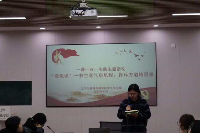 活动最后,陈滢琪强调全体青年党员要把毛泽东思想转化为坚定理想、锤炼党性和指导实践的强大力量,用青春的能动力和创造力激荡起民族复兴的澎湃春潮。