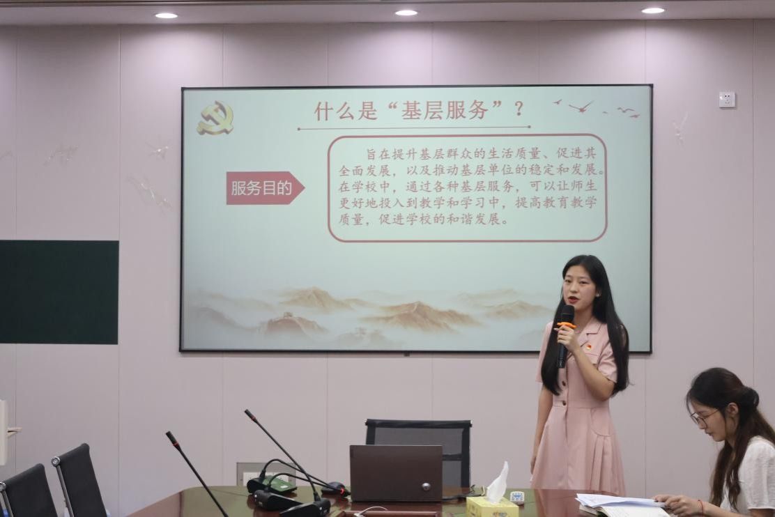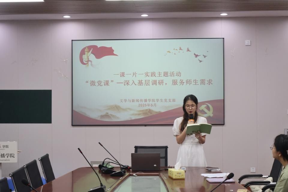 接着,微党课讲解人22级898中文班的江晴同学以“深入基层调研,服务师生需求”为主题,从深化思想认识、践行调研行动与健全长效机制三个方面为我们指出:深入基层调研是共产党人的履职之基。我们要扎根一线,服务师生,以实际行动践行初心使命。江晴同学在讲述中,既系统梳理了师生关切的实际问题,又通过详实的数据分析和典型案例,提出了切实可行的解决方案,让在场同学深刻认识到,只有真正走进师生、了解需求,才能提供精准服务,展现新时代青年的责任担当。