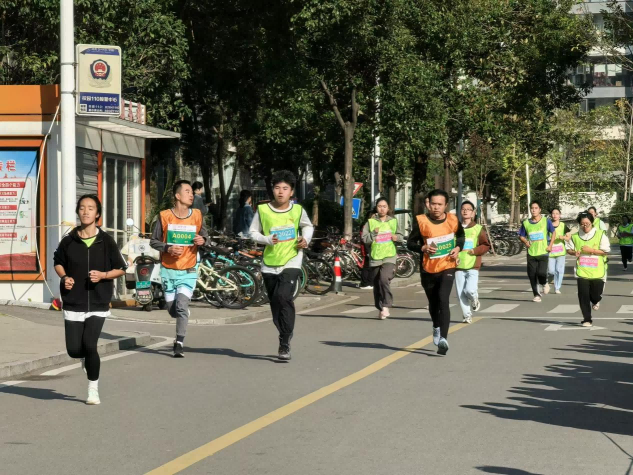 上午9点15分,罗成翼宣布活动开幕,现场气氛瞬间被点燃。起跑线前,选手们迅速集合,个个精神抖擞、跃跃欲试。发令枪响,参赛者们冲出起跑线,沿着精心规划的路线,穿梭于公司的标志性建筑之间。百熙楼、红墙、国基广场、综合体育馆、田汉剧场等地标与校园美丽风光在参赛者的奔跑中逐一呈现。赛道上,选手们不仅展现了顽强的拼搏精神,还相互鼓励、相互支持,共同为完成全程而努力。赛道两旁,为选手们加油助威的呐喊声、掌声此起彼伏,整个校园洋溢着浓厚的体育氛围。