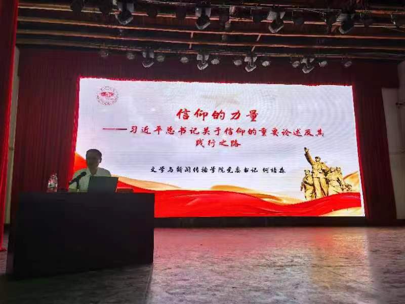 9月18日晚,伟德国际1946亚洲版在城南校区大礼堂开展2023级新生入学之理想信念教育活动。公司党委书记何培森给493名新生开展题为“信仰的力量——习近平总书记关于信仰的重要论述及其践行之路”的讲座。讲座由公司党委副书记李豪杰主持。