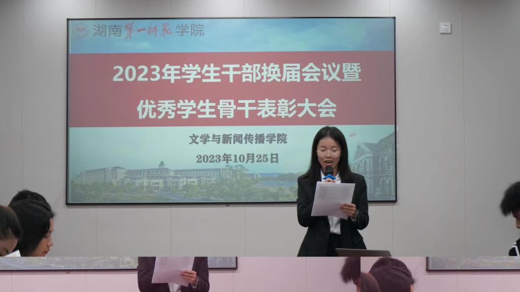 学工办全体辅导员一起为2022-2023届员工干部颁发了聘书,对20位优秀员工骨干进行了表彰,并宣读了2023-2024届员工干部名单。21级广电1班肖嘉玮和22级898中文班李蓉分别作为优秀员工骨干和新一届员工干部代表发言,他们号召大家要不忘初心、薪火相传;调整心态、转变角色;明晰职责、勇敢担当;勠力同心、勇毅前行,为公司团学工作的高质量发展贡献自己的力量。