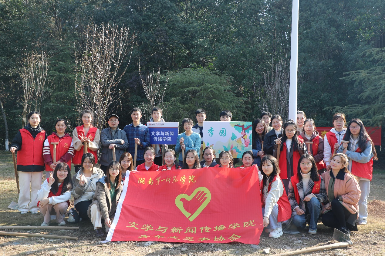 桃李不言,下自成蹊。校园种桃植李活动不仅寓意着百年师范教书育人,硕果累累,也践行了习近平生态文明思想、建设美丽湖南的内在要求,植树造林、绿化家园。