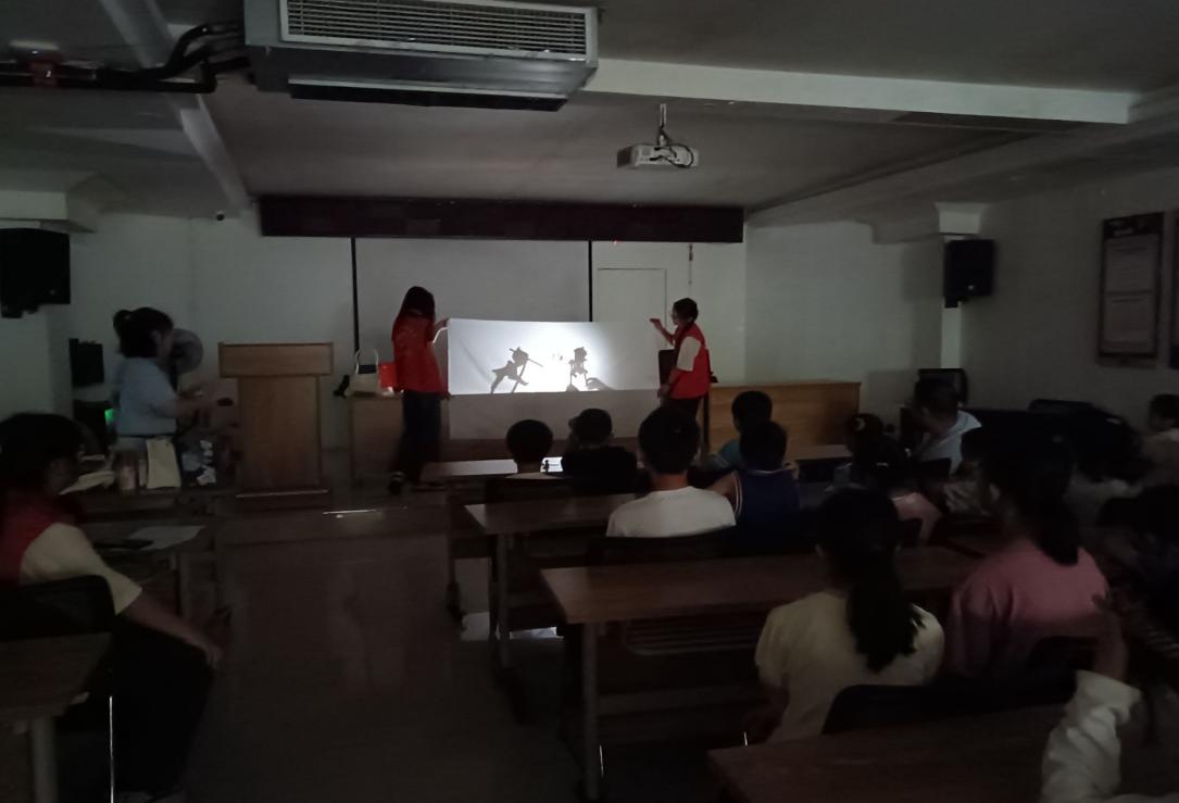 “二师兄,师傅被妖精抓走了。”只见幕布后的志愿者们用灵巧的双手操纵人物,边唱边演,原本静止的人物瞬间被赋予了生命,在白幕前上演着精彩的故事。台下的小朋友们看得津津有味,时而高兴喝彩,时而哄堂大笑。