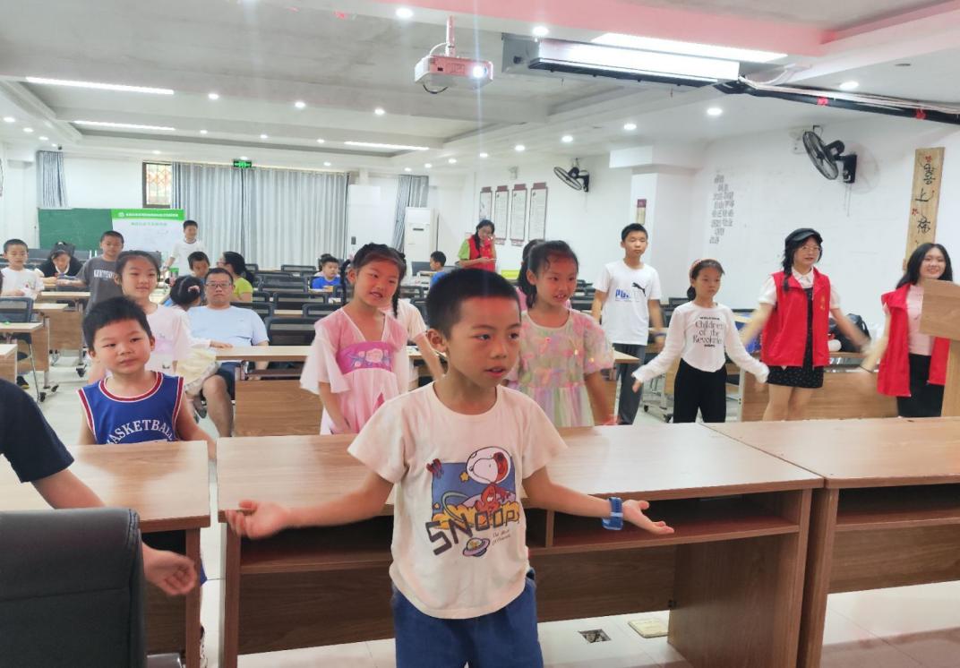 小朋友们迫不及待地为领取到的皮影涂色,在志愿者的耐心指导、有序组织下,分组排练属于自己的皮影戏。“孙悟空大闹天空,如来佛祖用五个指头就降服了顽皮的猴子!”梅园社区的小朋友们在幕布后兴奋地表演,沉浸式地操控着自己的专属皮影。