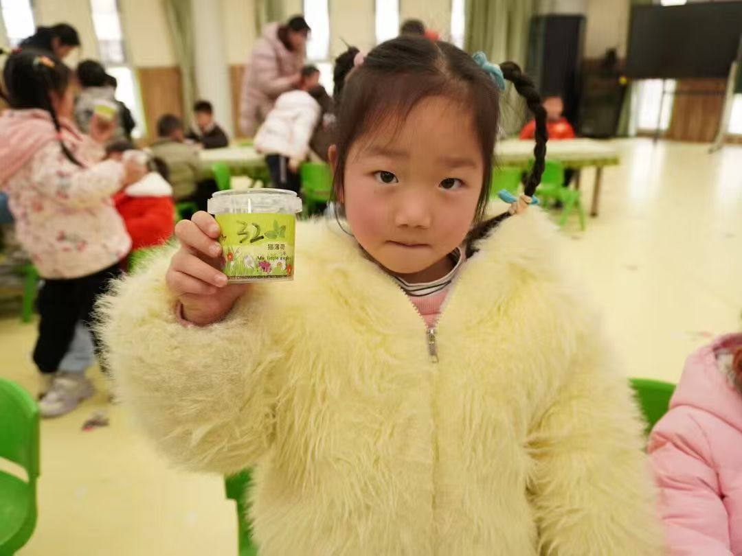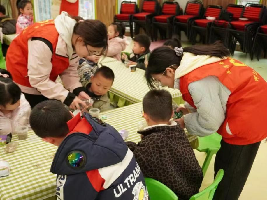塑料小花盆在长桌上列队等待,营养土与植物种子组成了孩子们最期待的“春日盲盒”。志愿者们化身“魔法师”,为每位小朋友分发手工盆栽种植材料,“先铺陶粒做小床,再盖三铲魔法土,我们的种子就有最舒服的家啦。”志愿者轻握孩子手腕示范如何浇水后,现场的大家都迫不及待地开始种植自己的盆栽盲盒了。