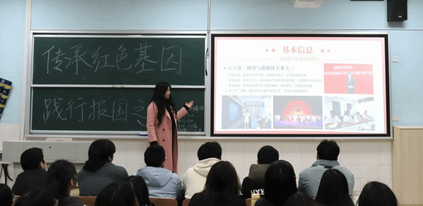 方子睿就暑期“三下乡”等社会实践活动,讲述了其对自身成长和教学能力提升的作用,向大家展示了作为一名老师的幸福感;管依帆则鼓励同学在大学期间深度汲取书籍力量,她诚挚地勉励大家多读书;李蓉分享了自己担任院青志协会长期间,在每次与不同个体的温暖交汇中,践行志愿精神,收获独属于自己的成就感……