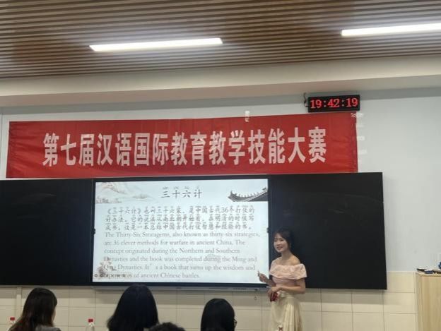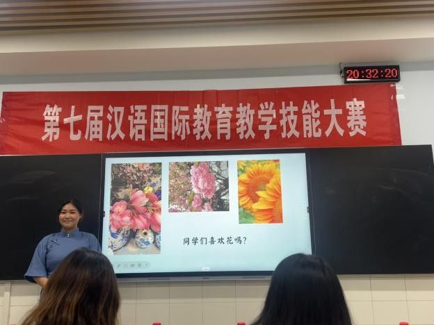 文化知识阐释环节则聚焦中华文化国际传播的创新表达。选手们以“三十六计”、留白、诗词等为载体,结合短视频展示、文化对比等形式,诠释如何以通俗易懂的方式向海外学习者传递中华文化精髓。选手李柯佳以“人民币上的花”为切入点,用中英文双语联动讲解,展现了跨学科教学的独特魅力。