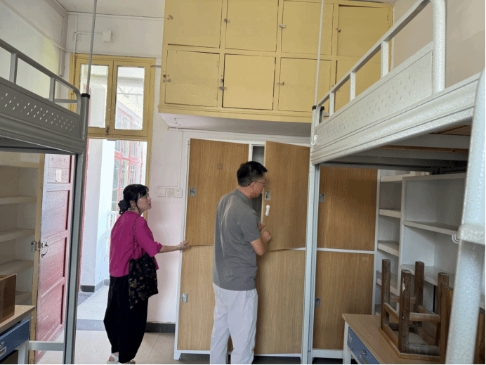 9月12日上午,公司党委副书记李豪杰带队,与全体辅导员到城南书院校区1栋员工公寓进行卫生和维修检查,对寝室卫生状况、其他安全隐患等进行排查,发现问题及时上报相关部门解决,为2025级新生入住营造良好公寓环境。